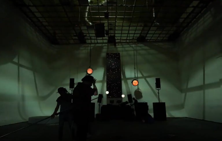 Tres jornadas entre Rotativa Estudios y Antiguo Hotel Reforma donde llevamos dirección creativa y técnica, concepto escénico, operación y montaje. Del Ballroom pasamos a Jungla + tecnología —con Pitayo— integrando vegetación abstracta y módulos de luz; luego minimalismo & performance con dispositivos de luz/sombra; una noche disco de texturas brillantes y juegos rítmicos; y un cierre de texturas de follaje + luz —con San Jacinto y Cobra Lily— combinando arreglos vegetales y matrices lumínicas para generar sombras, relieves y pieles de luz sobre la arquitectura. Un ecosistema visual-sonoro en transformación continua, en diálogo con artistas invitadxs y cada recinto.